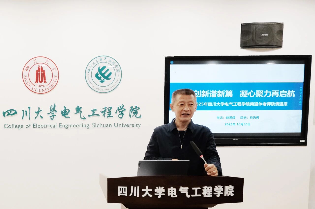 会上,肖先勇院长代表学院向一直以来对学院发展给予关怀支持的离退休老同志们表示感谢,并通报了一年来的工作进展,分析了当前面临的主要问题,汇报了未来发展的思考谋划。他说,学院发展的每一步前行,都凝聚着老前辈们的心血与汗水,恳望老同志们能持续关注学院动态,给予支持助力,为川大电气整体跻身一流行列贡献智慧、增添力量。