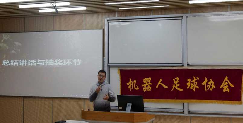 接着,大会进入机器人仿真足球联赛赛前培训会环节。协会黄孝麒同学围绕中国机器人大赛暨RoboCup机器人世界杯中国赛FIRA小型组5V5仿真赛道规则、SimuroSot5仿真平台使用两大核心展开实操讲解,从场地划分、判罚标准等基础规则,到C++动态链接库开发、模块化策略设计等技术要点,层层递进、深入浅出,帮助新会员们快速掌握参赛核心技能。会长倪珩鑫同学介绍了联赛规划:在2025-2026学年秋季学期与春季学期各设两场常规赛,2026年9月召开校赛作为国赛晋级淘汰赛,联赛积分排名靠前的队伍获得直通校赛决赛或半决赛的名额,不同基础的同学都能在赛事中获得成长。