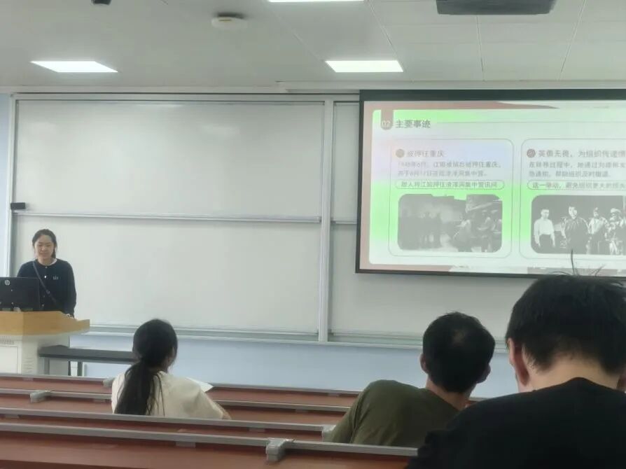 2024级101-102团支部依托主题团日活动的形式,聚焦江姐事迹开展专题学习。主持人在台上深情讲解,江姐投身革命、狱中坚守信仰、面对酷刑不屈服的英雄历程被生动还原。同学们在饱含敬意的讲述中深刻直观感受到革命先烈“舍小家为大家”的崇高气节与“甘将热血沃中华”的坚定信念。