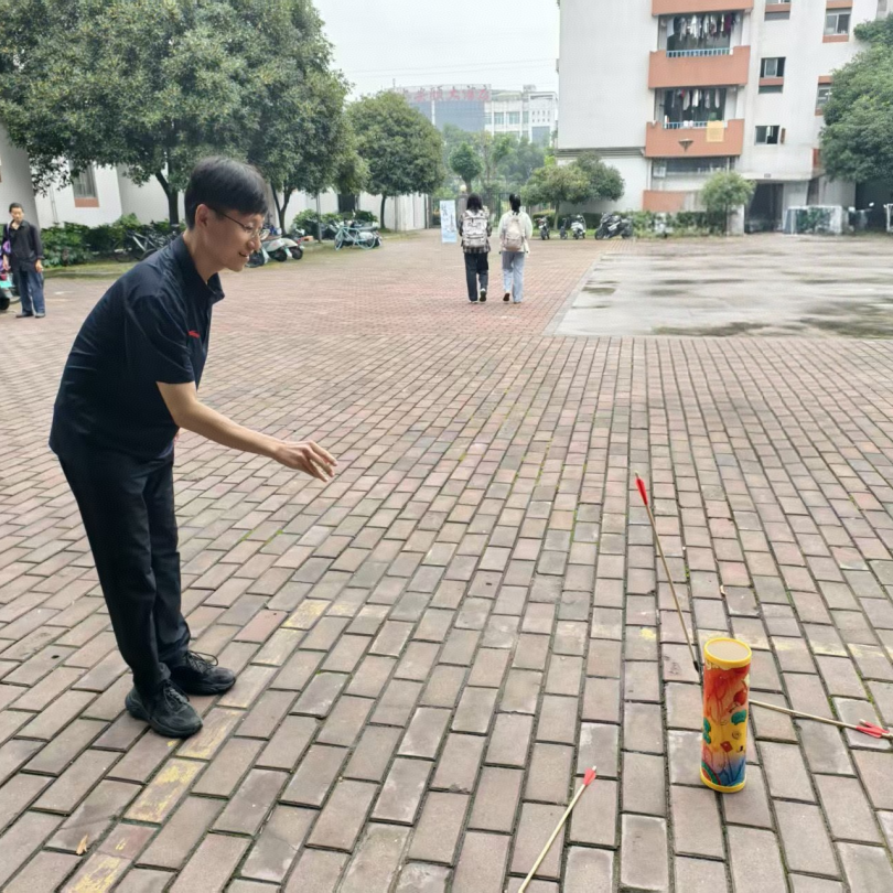 活动现场满是青春活力与欢声笑语。在同学们的热情邀请下,老师们兴致勃勃地加入到投壶、“射覆”和书签漆染等趣味游戏中——老师们时而认真研究投壶技巧,时而为同学们的精彩表现鼓掌喝彩,同学们则围在一旁支招鼓劲,笑声、欢呼声此起彼伏,师生间的距离在轻松互动中悄然拉近,满是其乐融融的温馨画面。