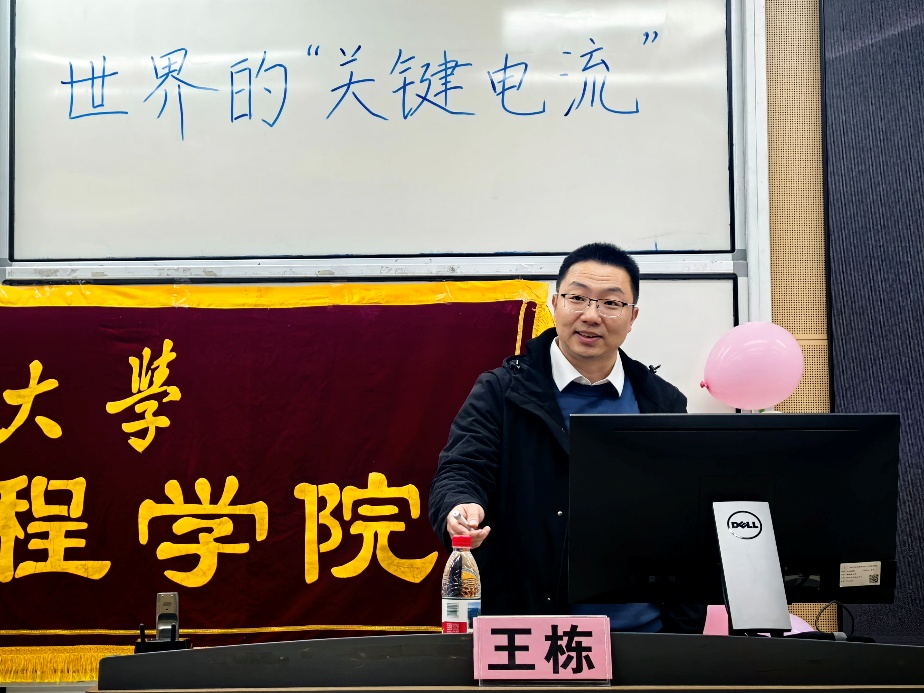 活动伊始,王栋老师以“关键电流点亮未来”为主题开场。他结合日常生活中的实际问题,简明扼要地介绍了电气工程在现代社会中的重要性。王老师用幽默风趣的语言阐述了电气工程如何在能源转型、产业升级和医养提质等方面发挥着至关重要的作用,并用深入浅出的表达帮助同学们建立整体认识。