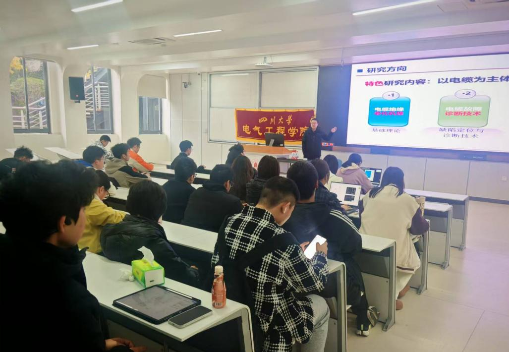 为搭建学术交流平台,帮助学生把握高压电缆领域前沿技术,激发科研探索热情,四川大学电气工程学院“学术大讲堂——高压电缆”专题讲座于12月20日顺利开展。本次讲座由学院副研究员李泽瑞老师和2025级研究生董力与同学主讲,吸引了来自电气、自动化、电子、材料等相关专业的学生踊跃参与。