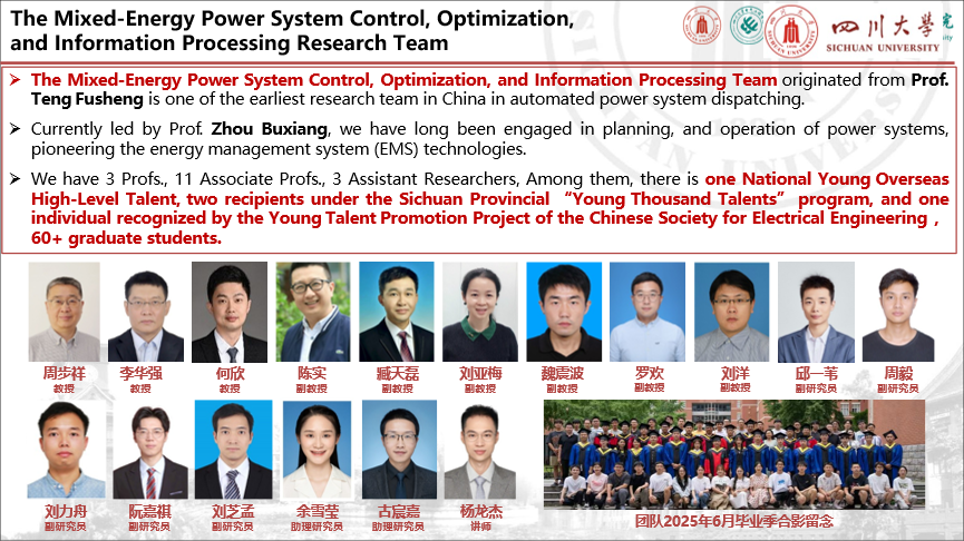 陈实,工学博士,副教授,博导,四川大学电气工程学院副院长。目前研究兴趣是电力系统优化调度运行、AI在电力系统中的应用等方面,发表SCI/EI论文30余篇学术论文,参编3部专著,并获得了多项授权发明专利。获得四川大学好未来教学名师荣誉称号,获得四川省教学成果2等奖。作为负责人承担了多个科研项目,其中包括国家自然科学基金面上项目一项、国家科技重大专项子课题一项,科研经费总计超过3000万元。担任IEEE电力与能源协会(PES)中国区电力系统保护控制技术委员会电网运行控制技术分委会理事,IEEE PES中国区教育委员会秘书。