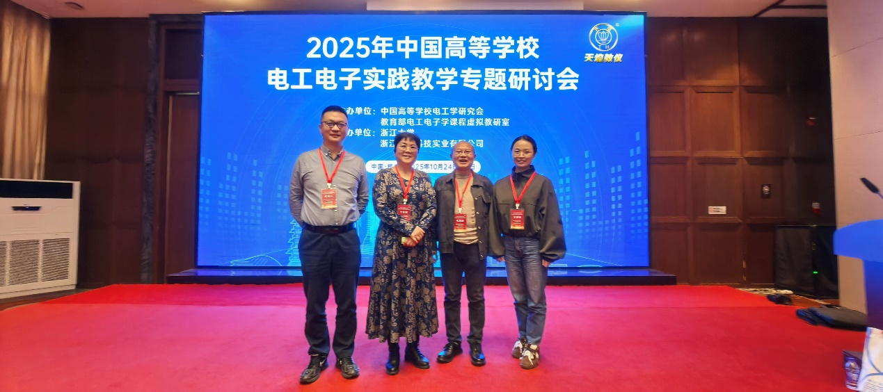 10月25日,2025年中国高等学校电工电子实践教学专题研讨会在浙江杭州顺利召开,来自全国42所高校从事电工电子相关专业理论和实验教学的教师齐聚一堂,共探电工电子实践教学改革新方向。学院电工电子中心教授、中国高等学校电工学研究会副理事长兼秘书长雷勇、中心党支部书记印月参会。
