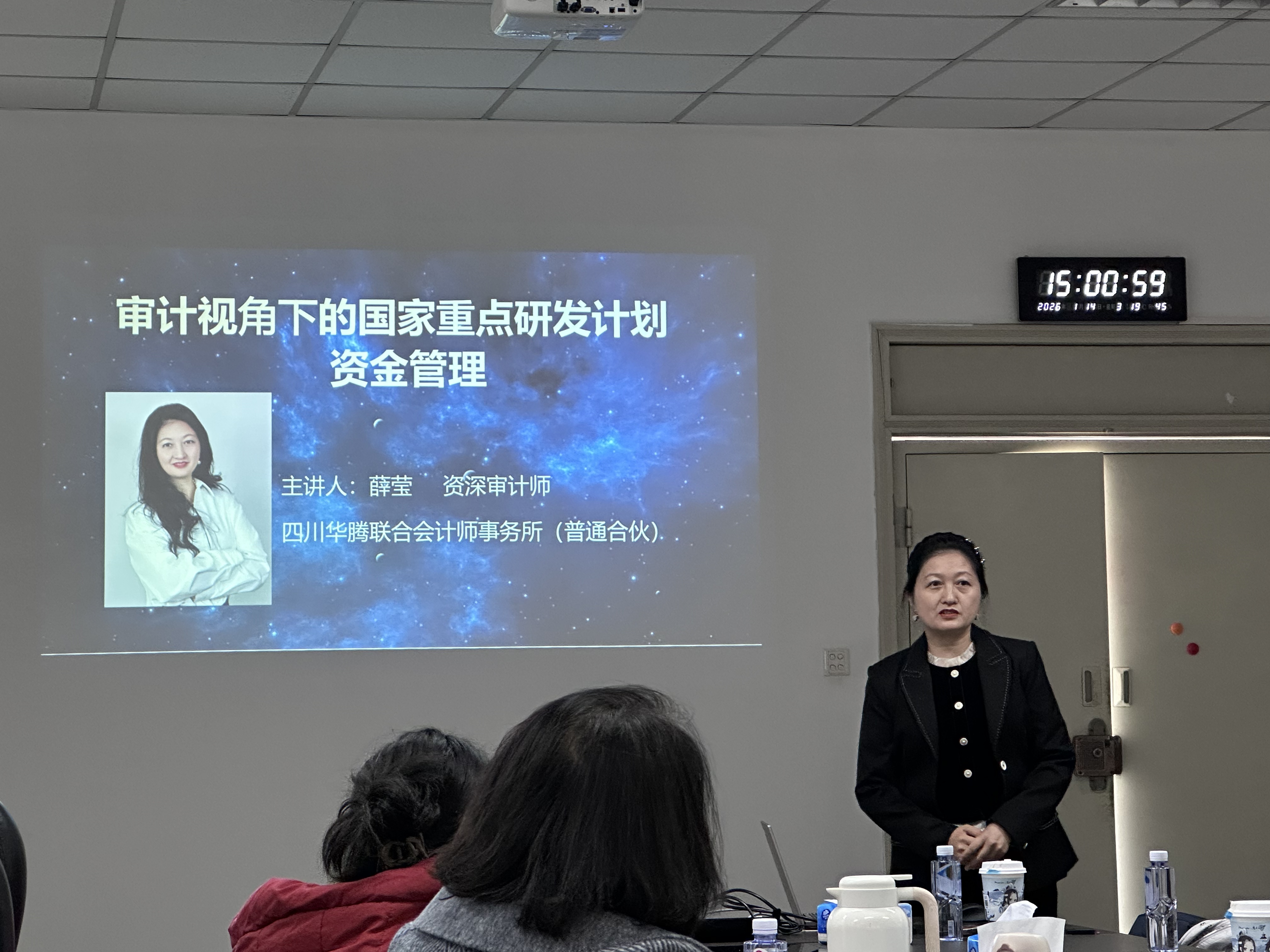1月14日下午3点,电气工程学院邀请了四川华腾联合会计师事务所资深审计师薛莹在基础教学大楼A220进行了专题讲座,讲座名称为“审计视角下的国家重点研发计划资金管理”。