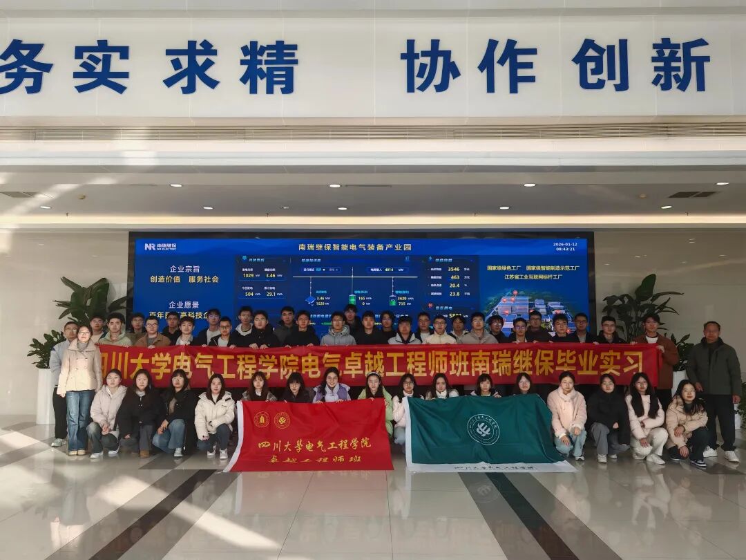 2026年1月12日,由学院老师张姝、黄勇带队,2022级电气工程学院电气卓越工程师班的45名同学来到南瑞继保电气有限公司开展毕业实习。