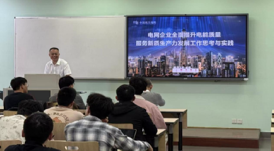 为进一步推动校企深度互动与资源共享,全面提升学生的工程实践能力、行业认知水平与职业核心竞争力,2026年4月14日,电气工程学院邀请南方电网深圳供电局三级领军技术专家史帅彬高工走进国家级一流课程《电能质量及其控制技术》课堂,在基础教学楼A座317教室为同学们带来主题为《电网企业全面提升电能质量服务新质生产力发展工作思考与实践》的专题讲座。