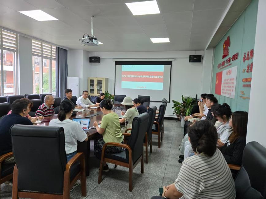9月17日下午,学院在基础教学楼B座205会议室召开2025年秋季学期党支部书记例会。学院党委书记赵昱辉,党委副书记兼纪委书记张英敏,副书记戴婷婷,学院专职组织员魏忠以及学院各师生党支部书记参加了会议。